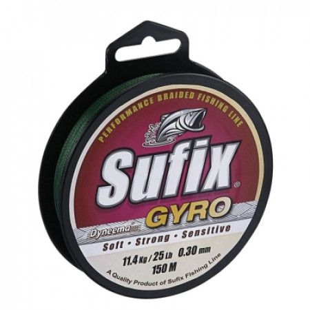 Sufix GYRO Braid Green - качественная плетеная леска, в процессе изготовления которой было использовано специальную технологию накручивания волокна GYRO, что увеличило чувствительность этой плетенки. Волокна Dyneema, используемые в производстве этой плетеной лески, обеспечивают ей высокую прочность и чувствительность, водоотталкивающие свойства и относительно малый диаметр. Отличительной особенностью этой плетеной лески есть ее мягкость.Технологии, применяемые в плетеных лесках (шнурах) Sufix Gyro и другие особенности: Dyneema - высококачественное волокно из высокомодульного полиэтилена HMPE, которое изготавливается путем DSM. Волокно Dyneema - это высокая прочность и малый диаметр.